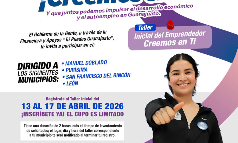 Silao, Guanajuato, 13 de abril de 2026. El gobierno estatal, a través de la Financiera y Apoyos Tú Puedes Guanajuato, abrió la cuarta convocatoria del programa “Creemos en Ti”.